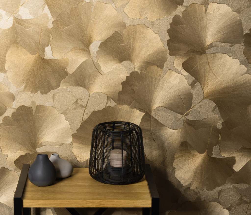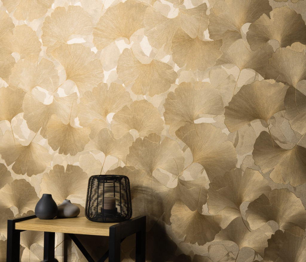 Arany színű levélmintás Vlies-vinyl tapéta, Erismann Elysium 10470-30