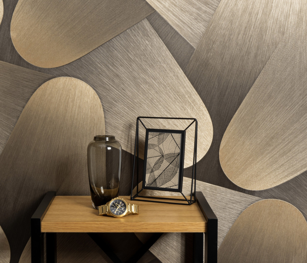 Barna-bronz geometrikus mintás Vlies-vinyl tapéta, Erismann Elysium 10423-15
