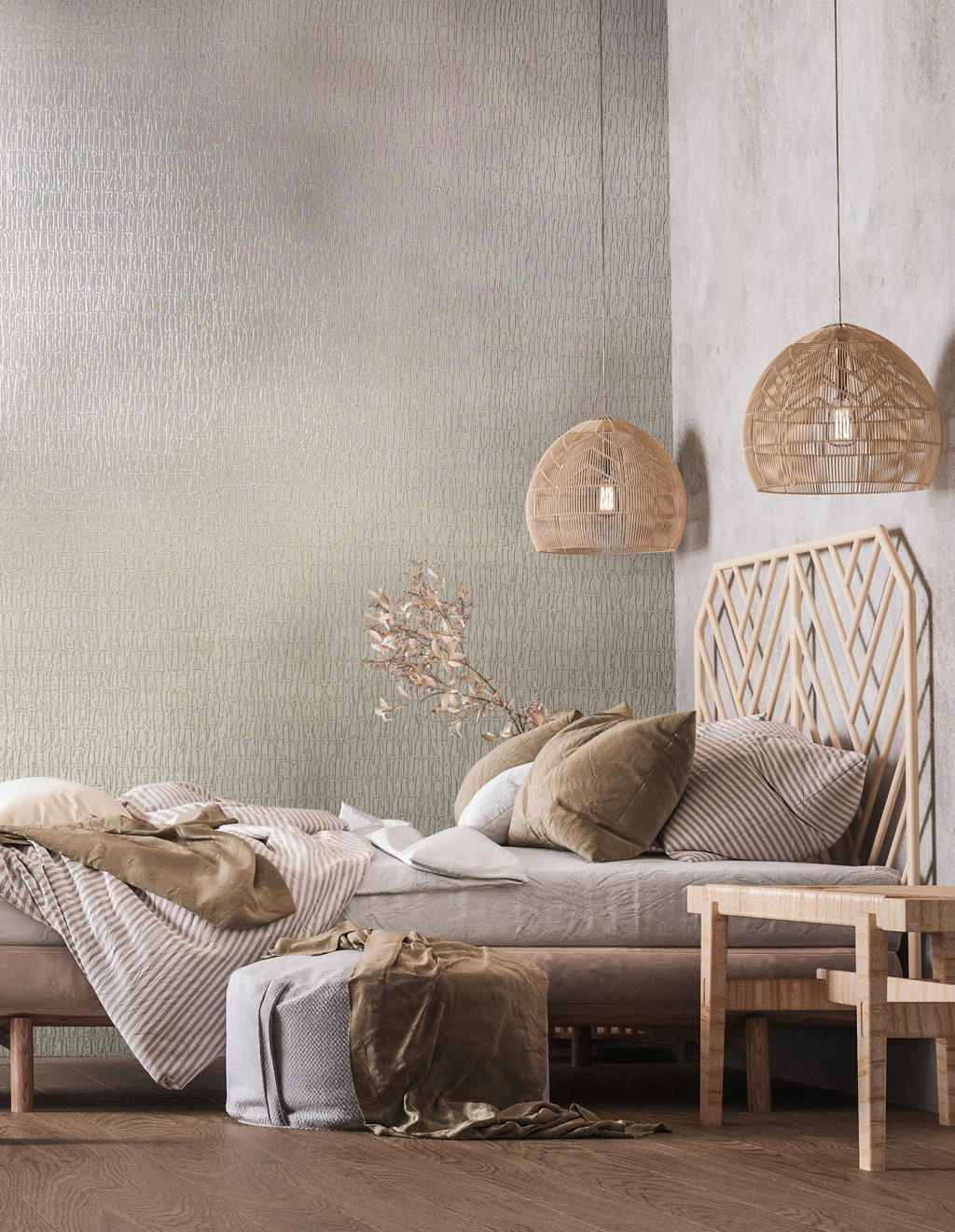 Bézs színű dombormintás Vlies tapéta, Kumano 1834502