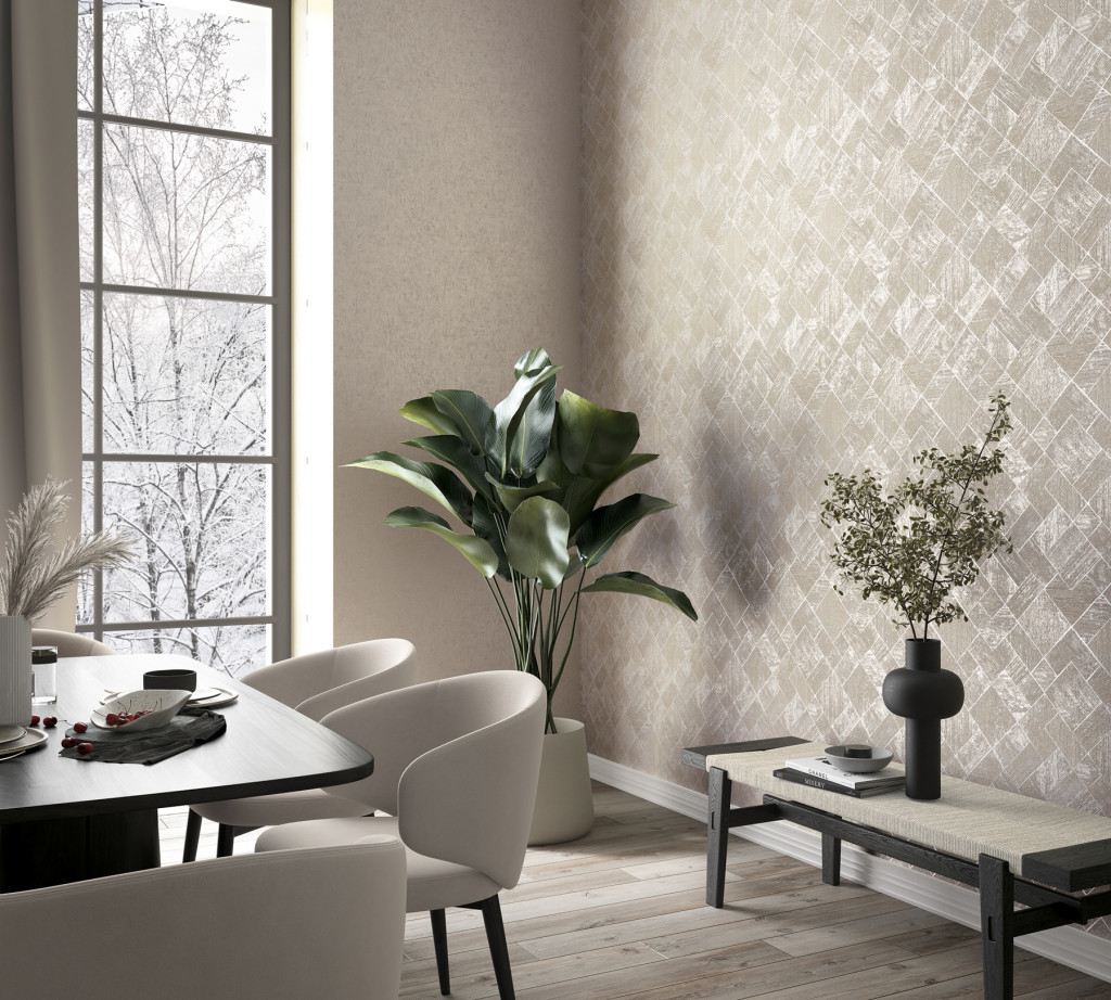 Bézs színű geometrikus mintás Vlies tapéta, Ritus 35509