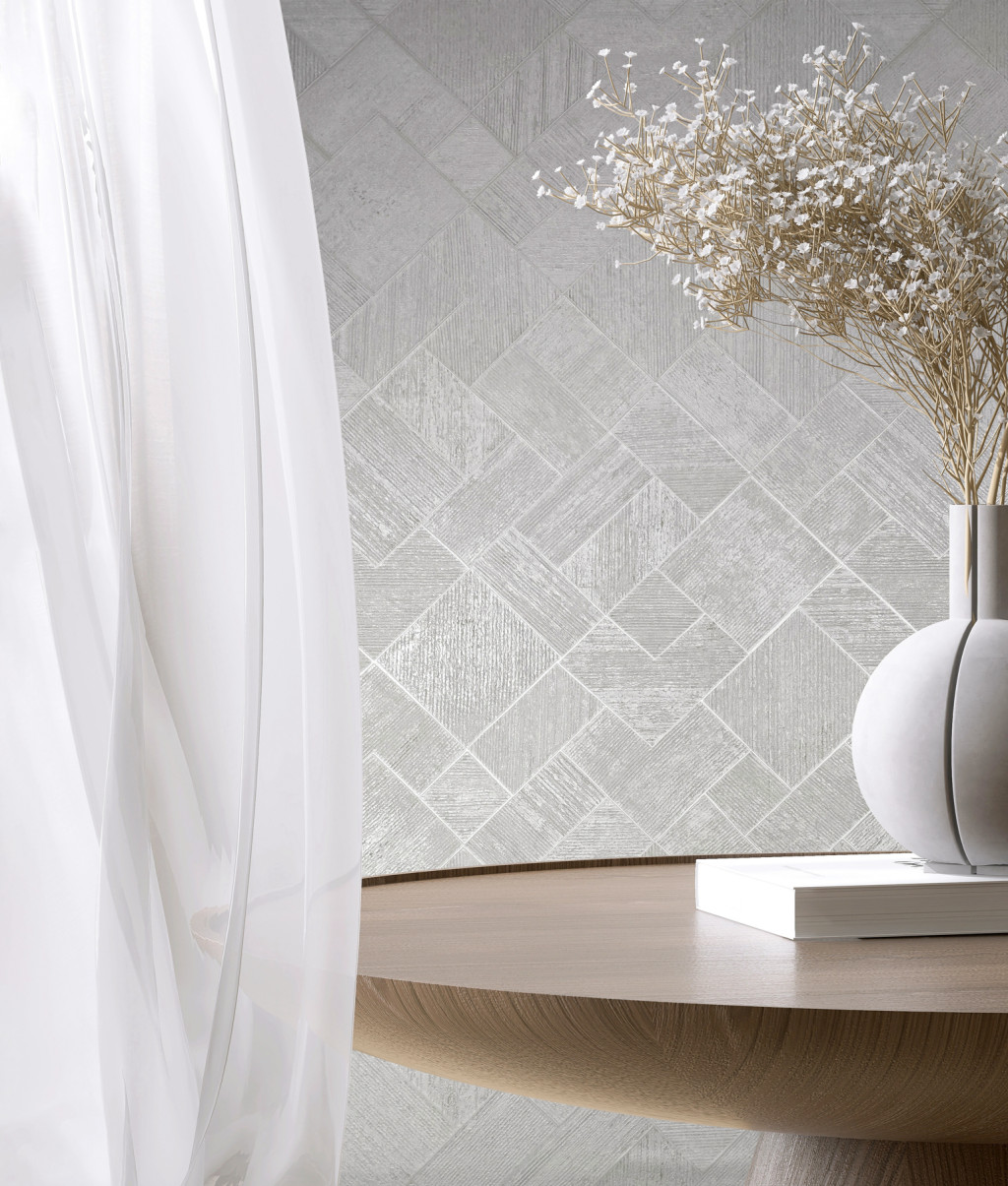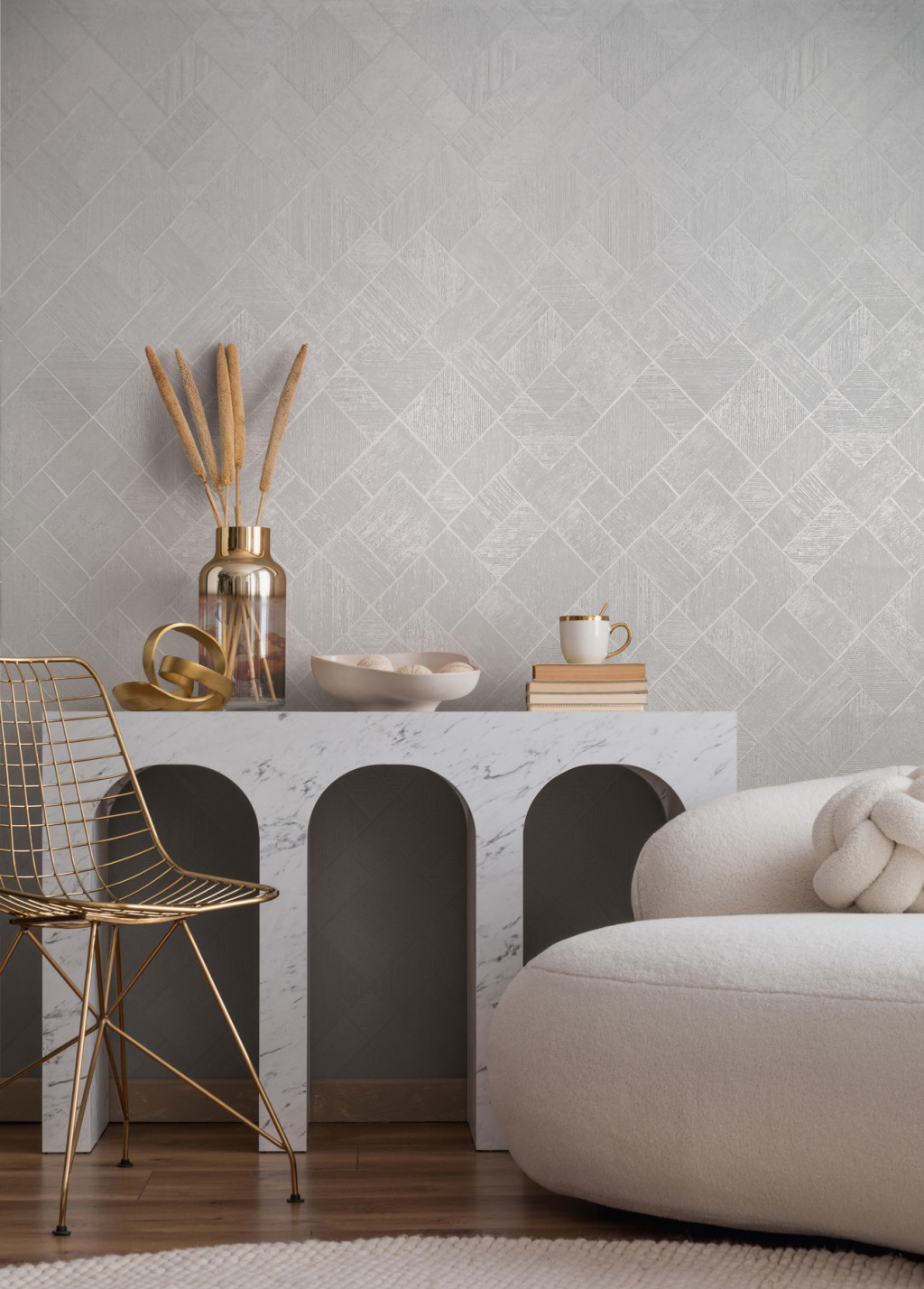 Fehér ezüst csillogó geometrikus mintás Vlies tapéta, Ritus 35508