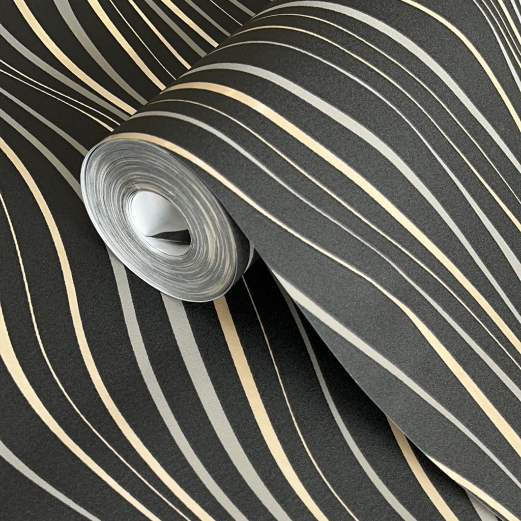 Fekete-arany színű hullámmintás Grandeco vlies-hab tapéta A75002