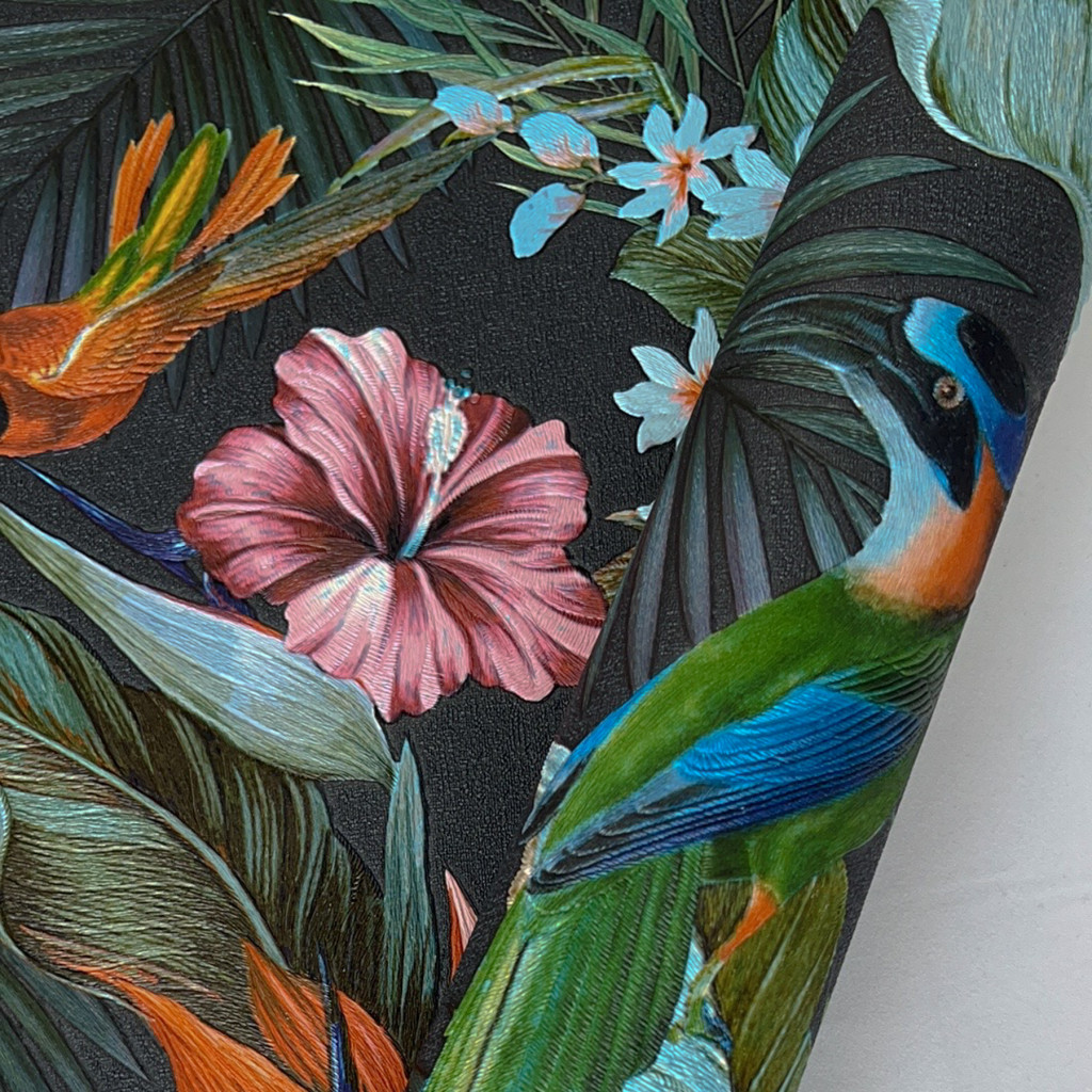 Fekete-zöld színű növényi mintás vlies-vinyl tapéta, Eldorado 15517