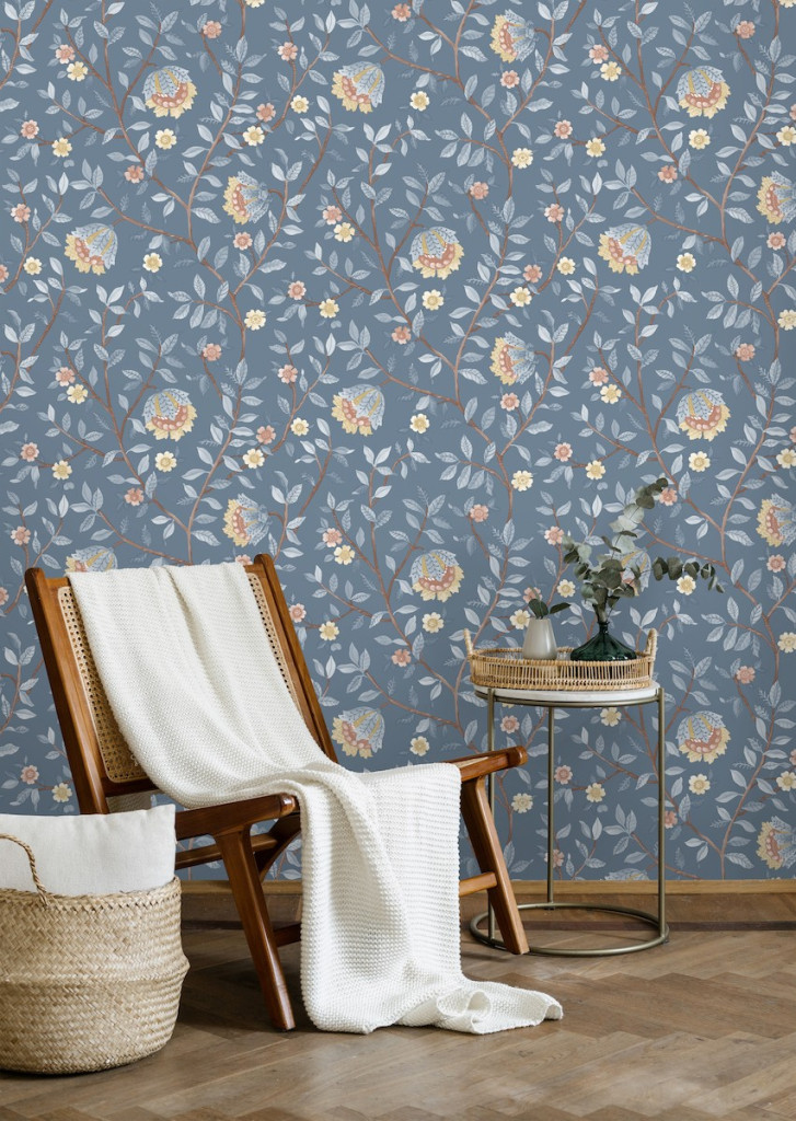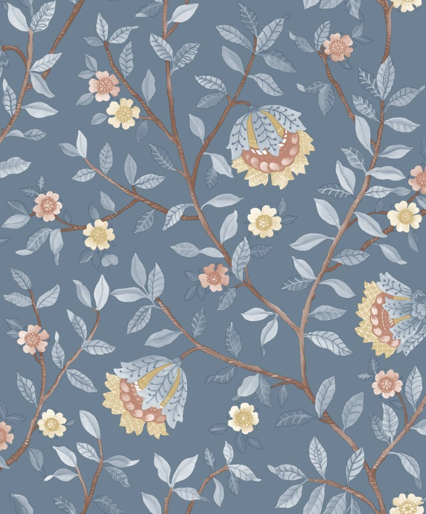 Kék alapon virágmintás Vlies tapéta, Botanique B19901