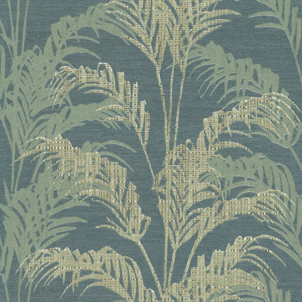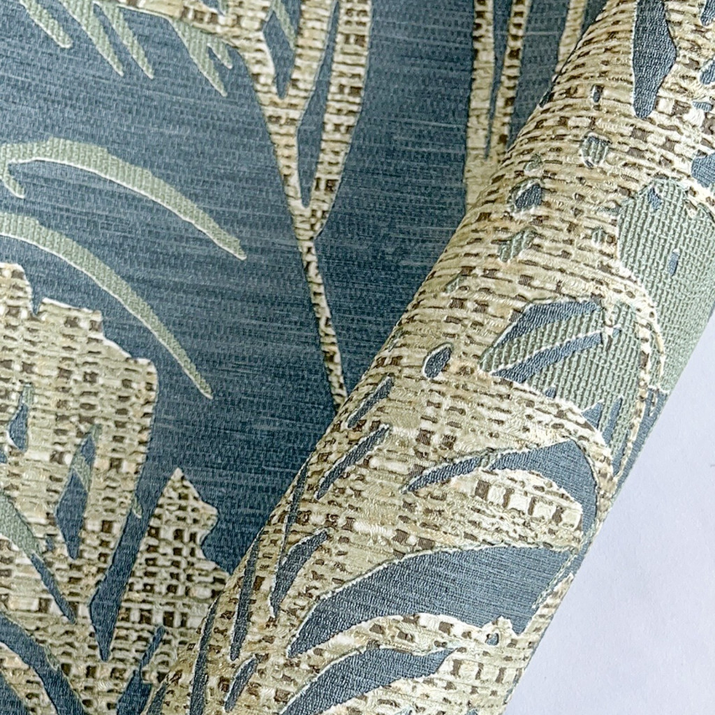 Kék-zöld színű levélmintás Vlies-vinyl tapéta, Maison Luxe 17731