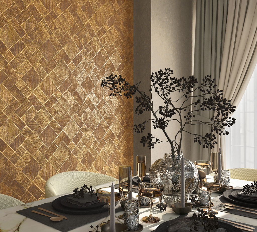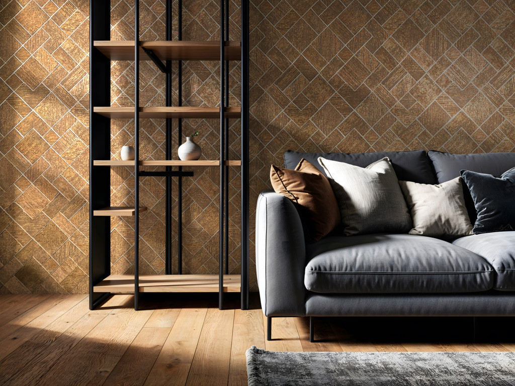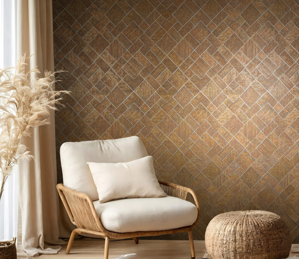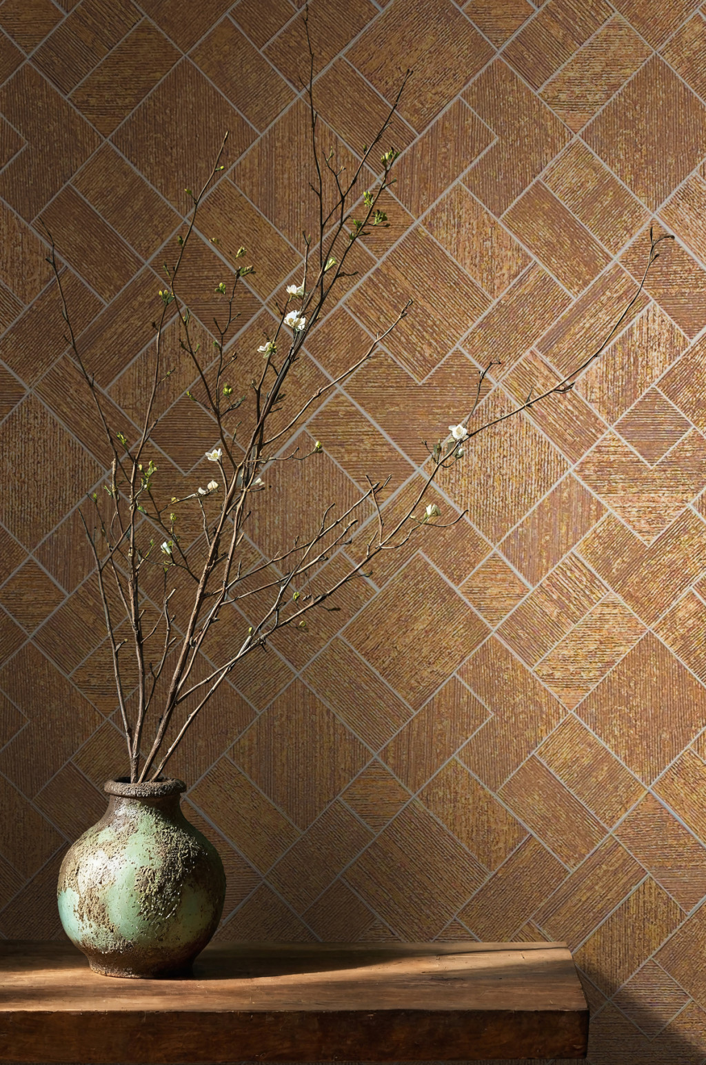 Rozsdabarna színű geometrikus mintás Vlies tapéta, Ritus 35513