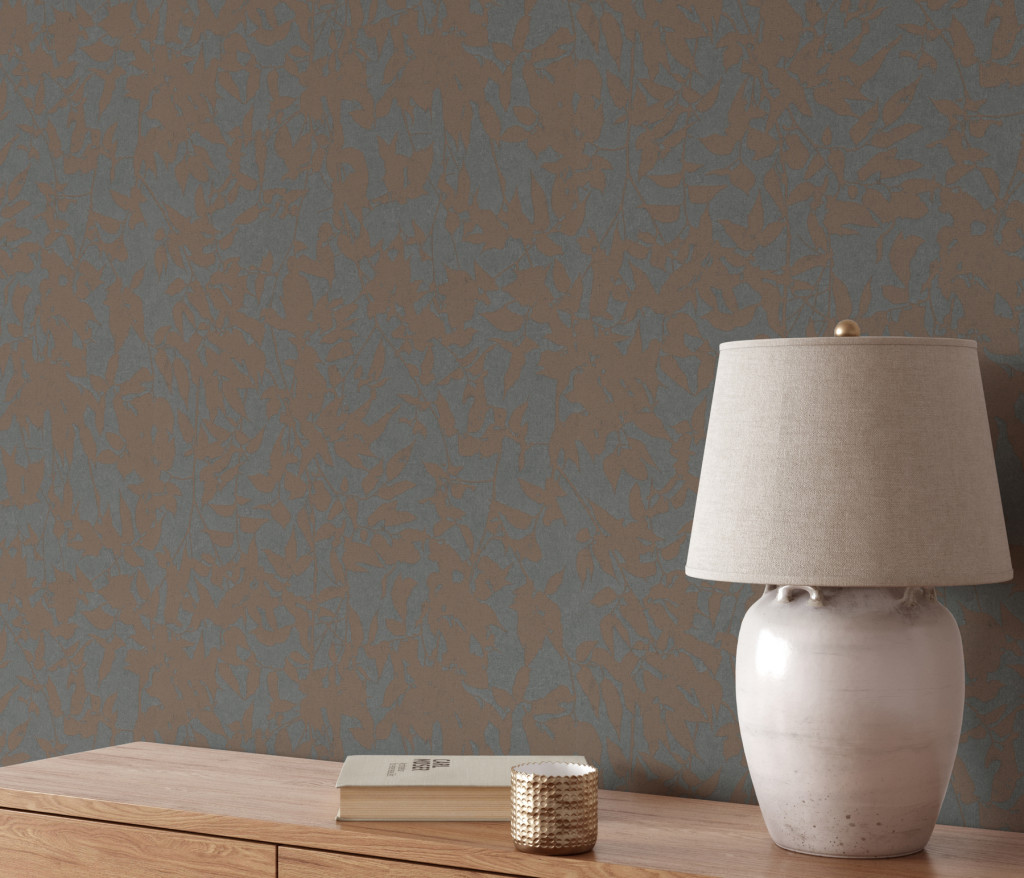 Sötét szürke alapon sötét barna levélmintás Vlies tapéta, Gentle 10435-47