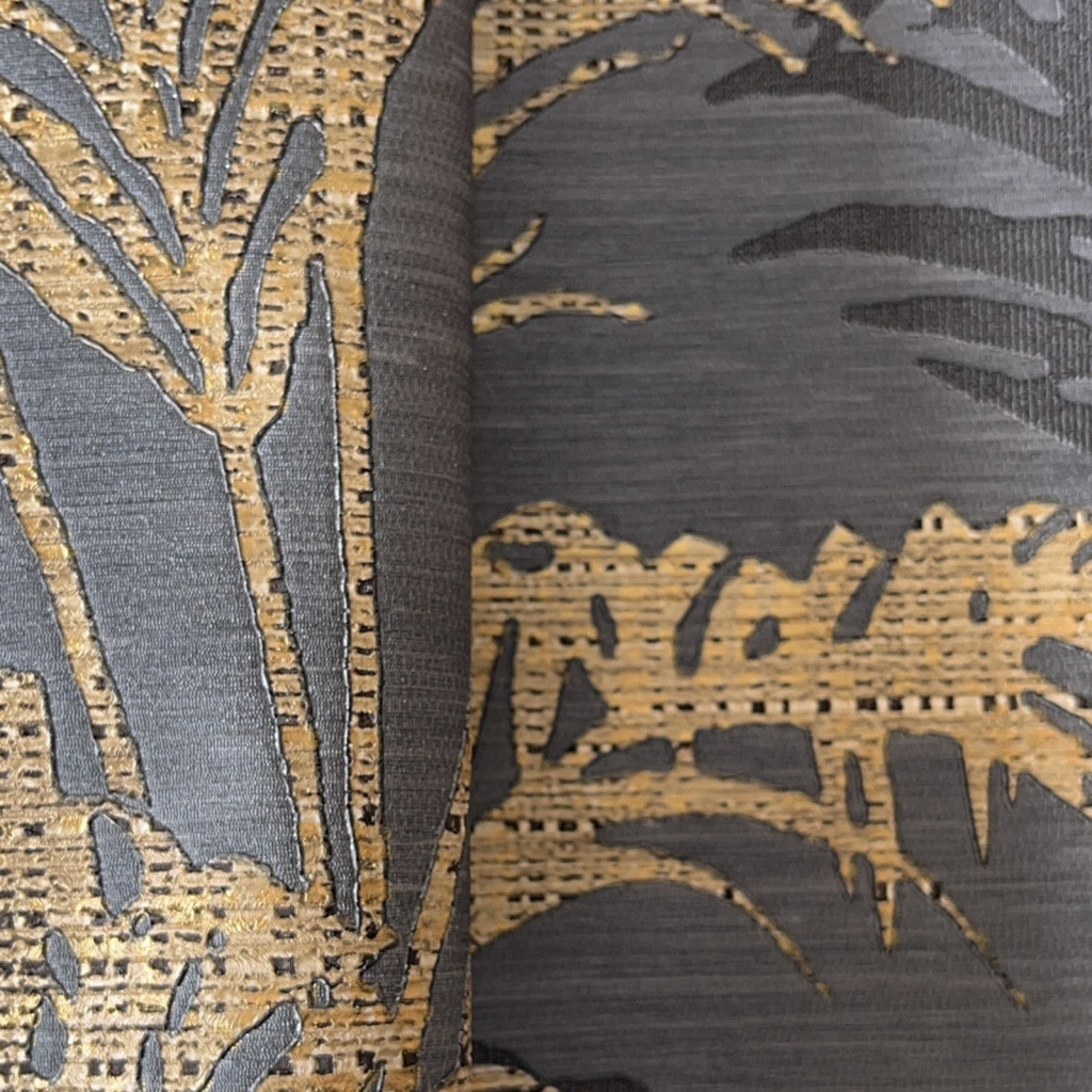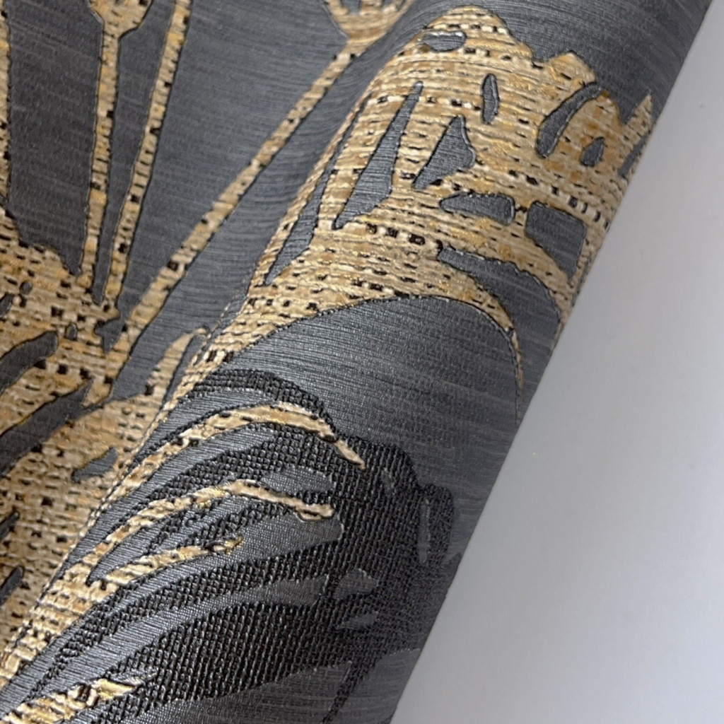 Sötétszürke-bézs színű levélmintás Vlies-vinyl tapéta, Maison Luxe 17741