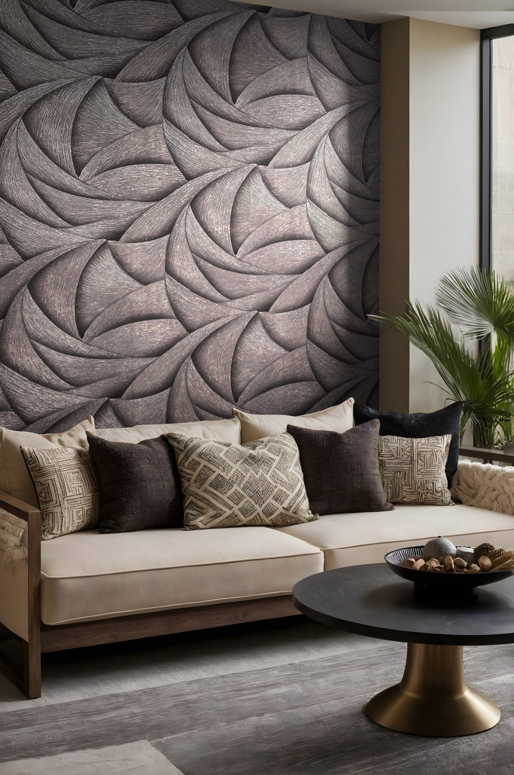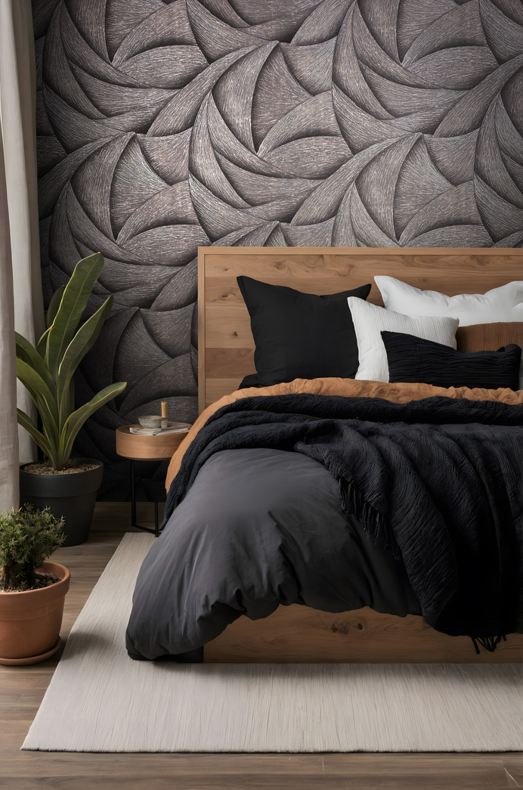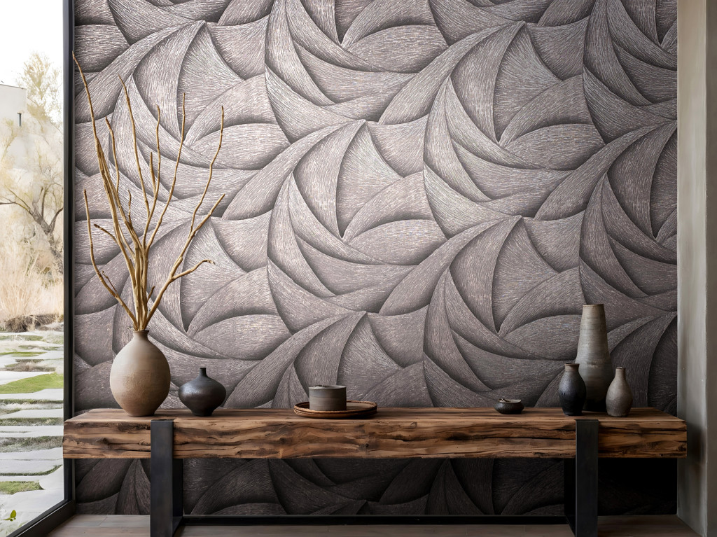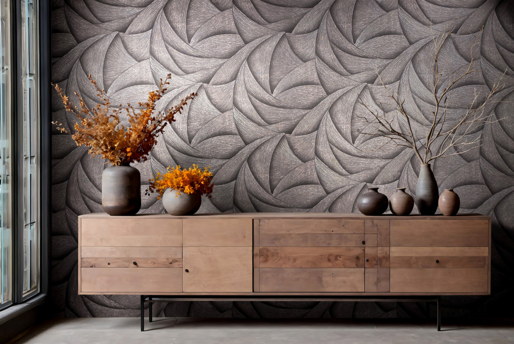 Sötétszürke színű csillogó növényi mintás Vlies tapéta, Ritus 35505