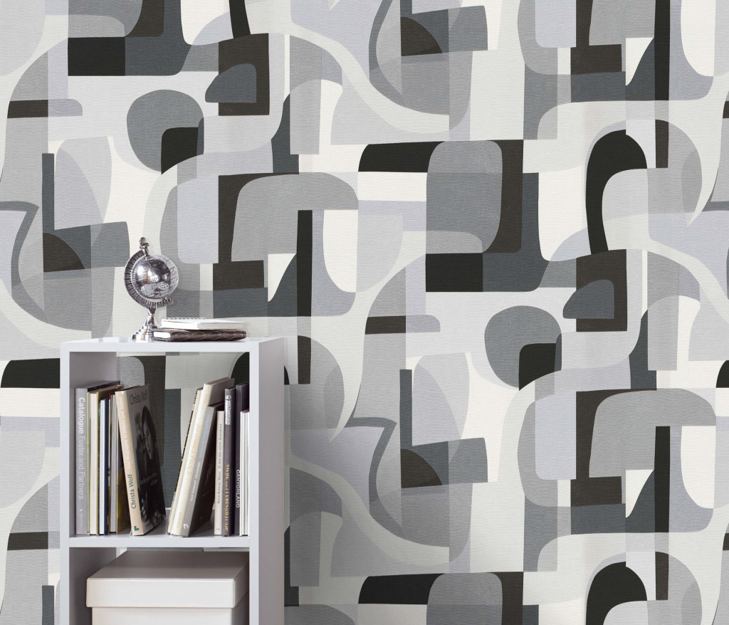 Szürke és fekete geometrikus Vlies tapéta, Gentle 10432-10