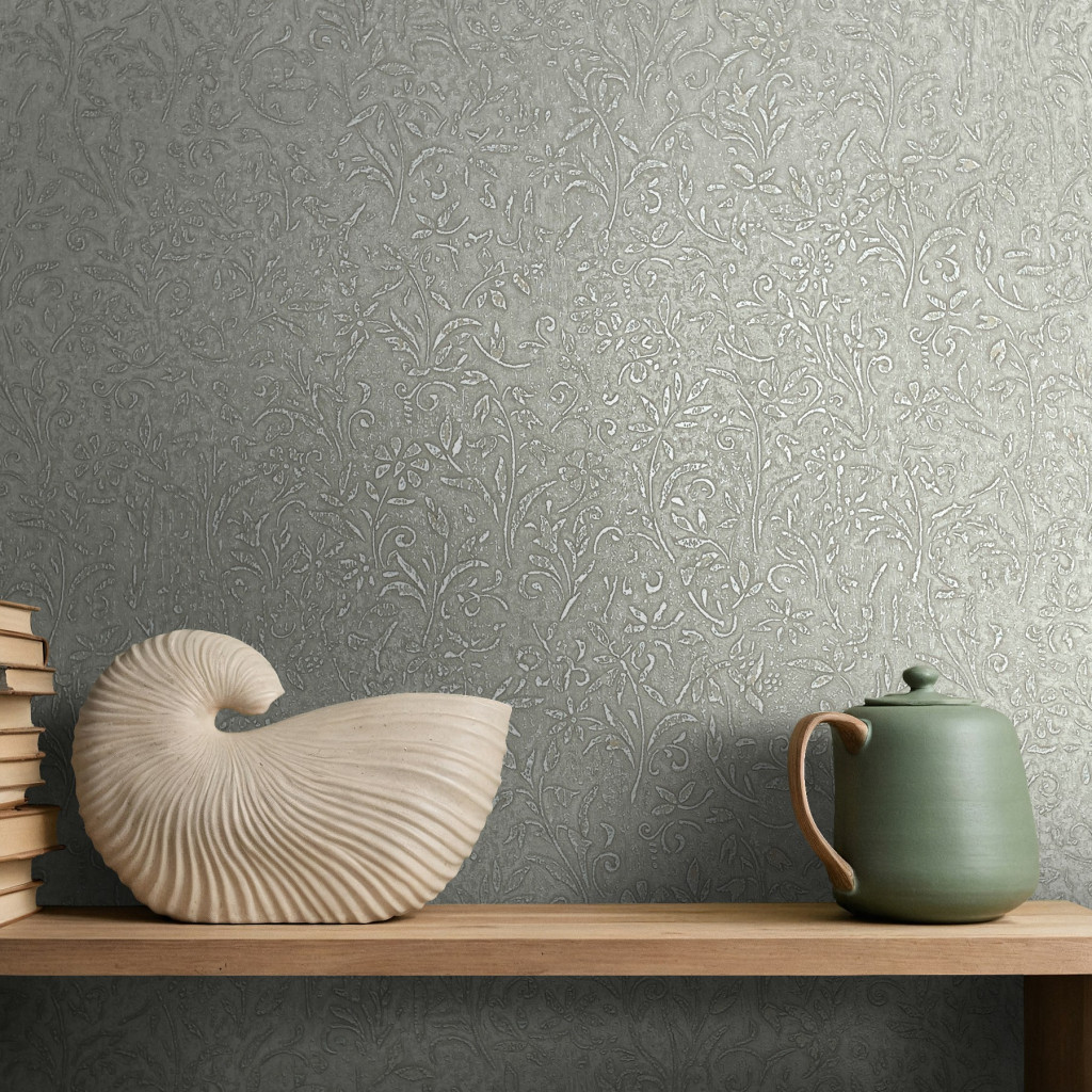 Szürke színű növényi mintás Vlies tapéta, Ritus 35529