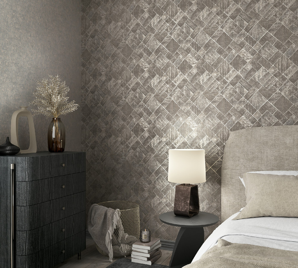 Szürkésbarna színű geomterikus mintás Vlies tapéta, Ritus 35511