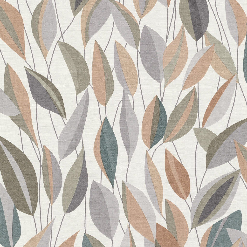 Tört fehér alapon szürke és barna levélmintás Vlies tapéta, Gentle 10431-07