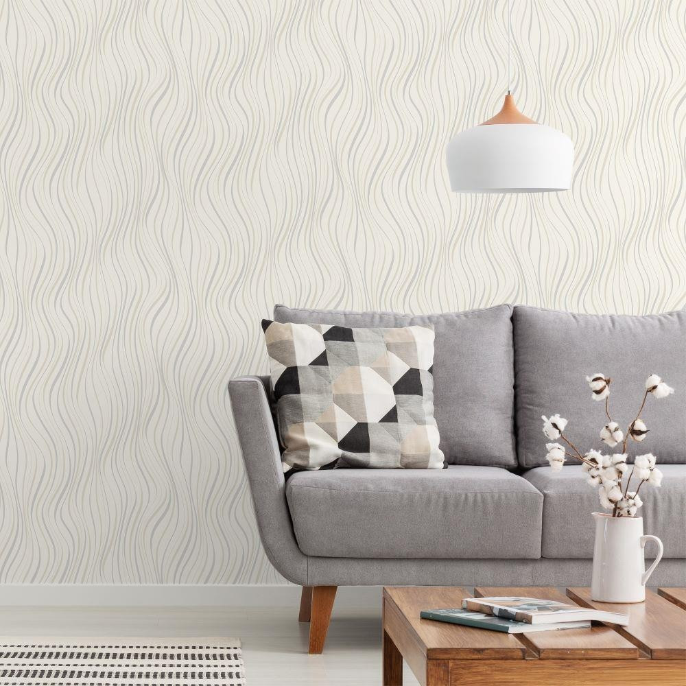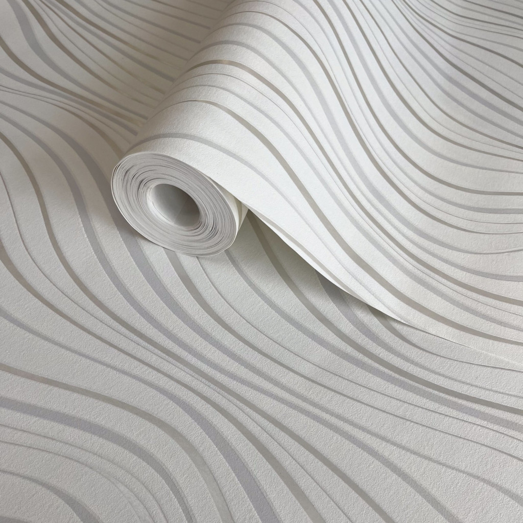 Tört fehér-ezüst színű hullámmintás Grandeco vlies-hab tapéta 2026