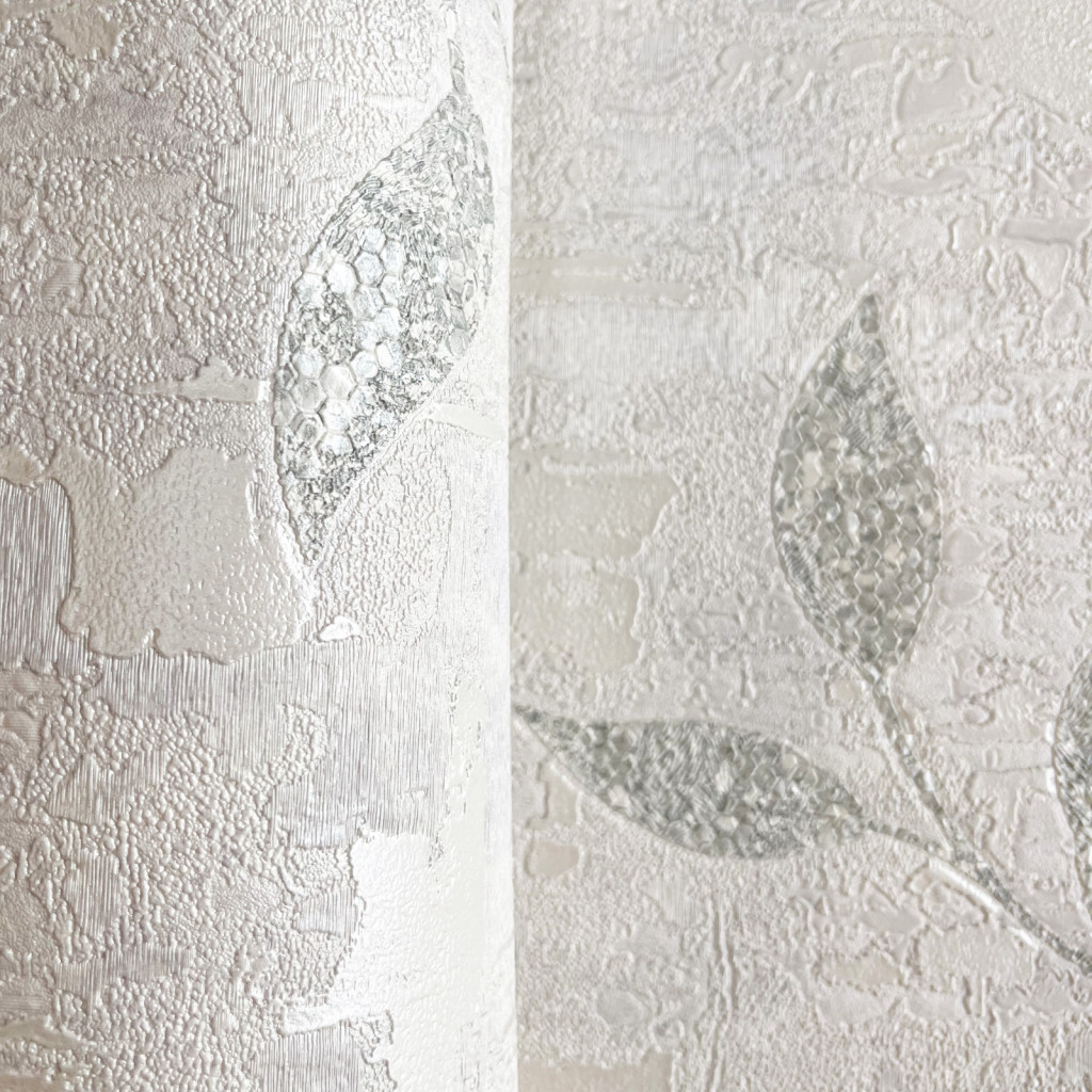 Tört fehér-ezüst színű növénymintás Vlies-vinyl tapéta, Maison Luxe 17749