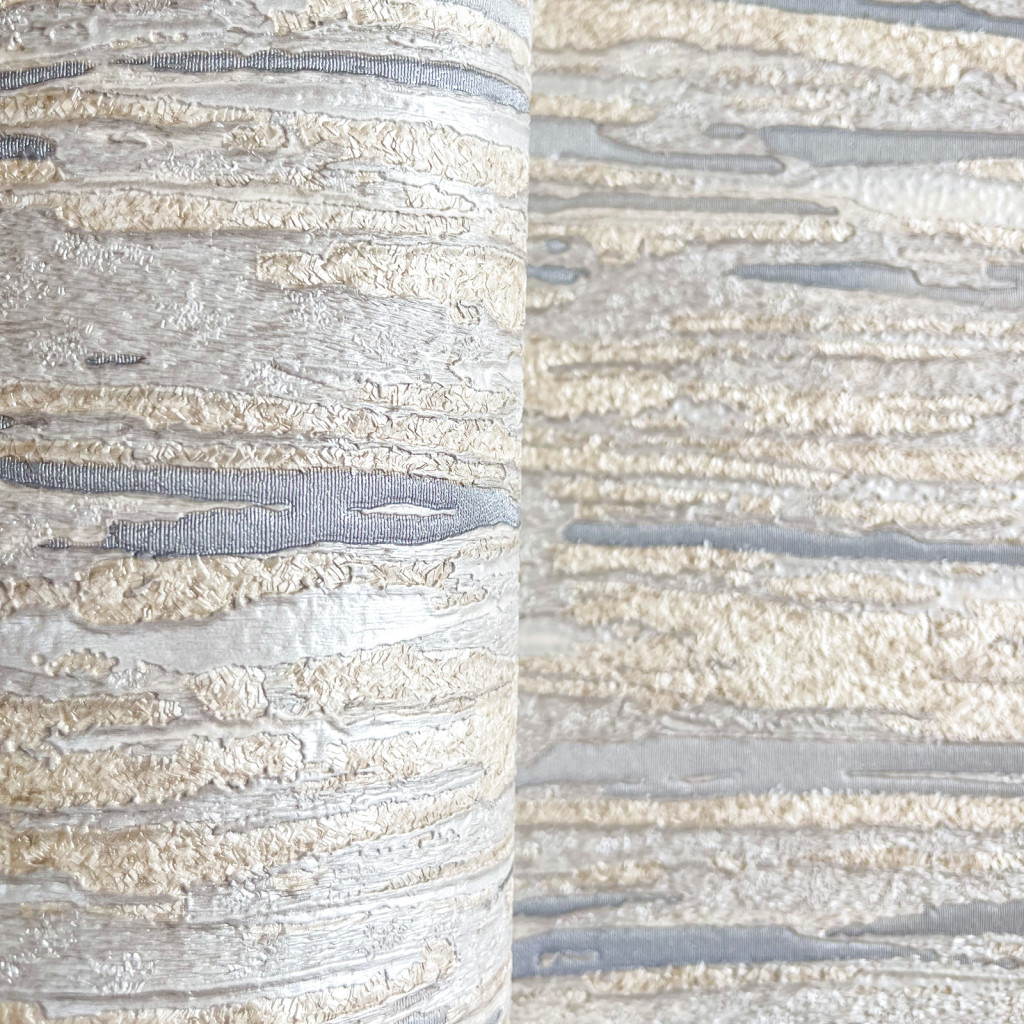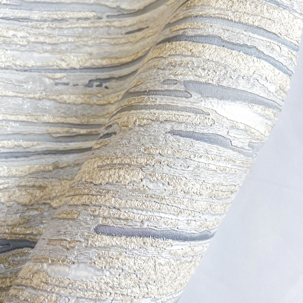 Tört fehér-ezüst színű vízszintes csíkos mintás Vlies-vinyl tapéta, Maison Luxe 17713