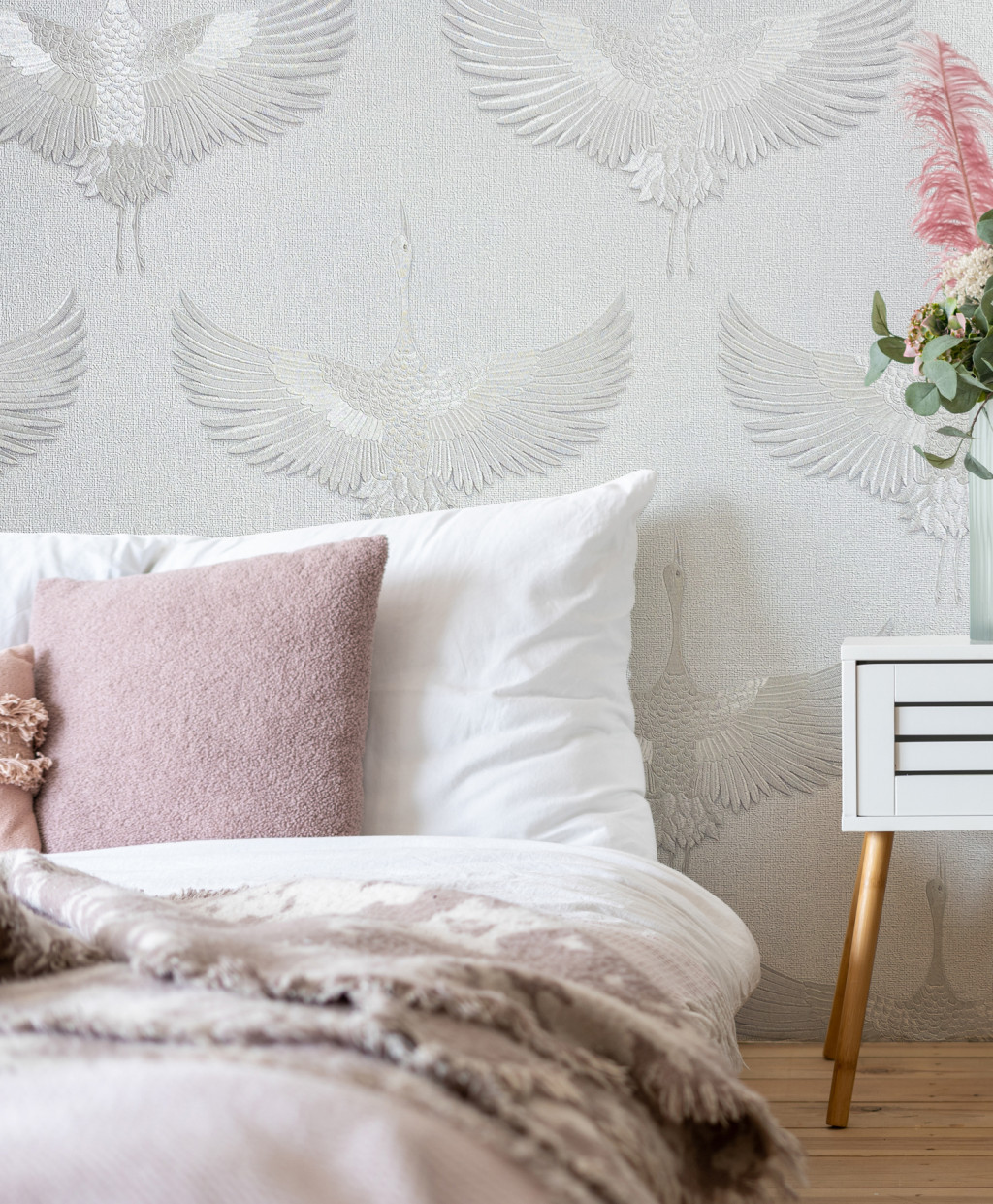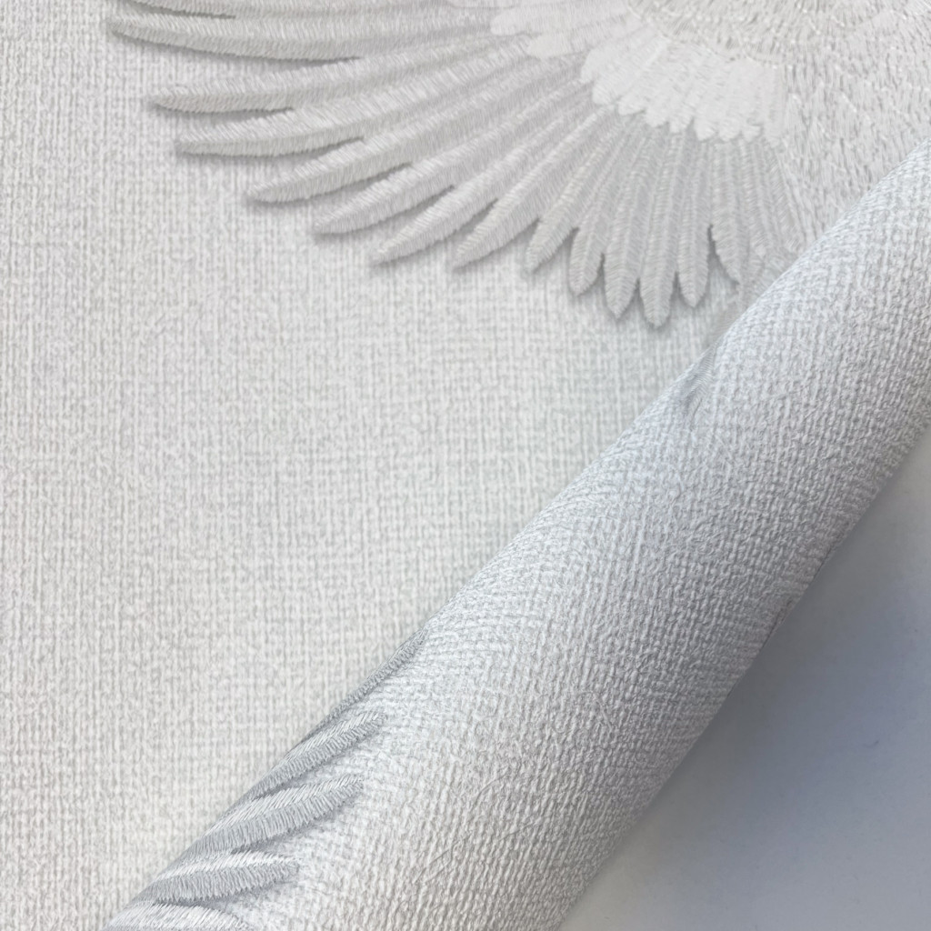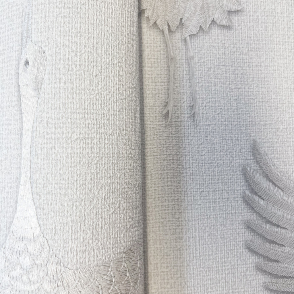 Tört fehér színű darumadár mintás Vlies tapéta, Kumano 1834528