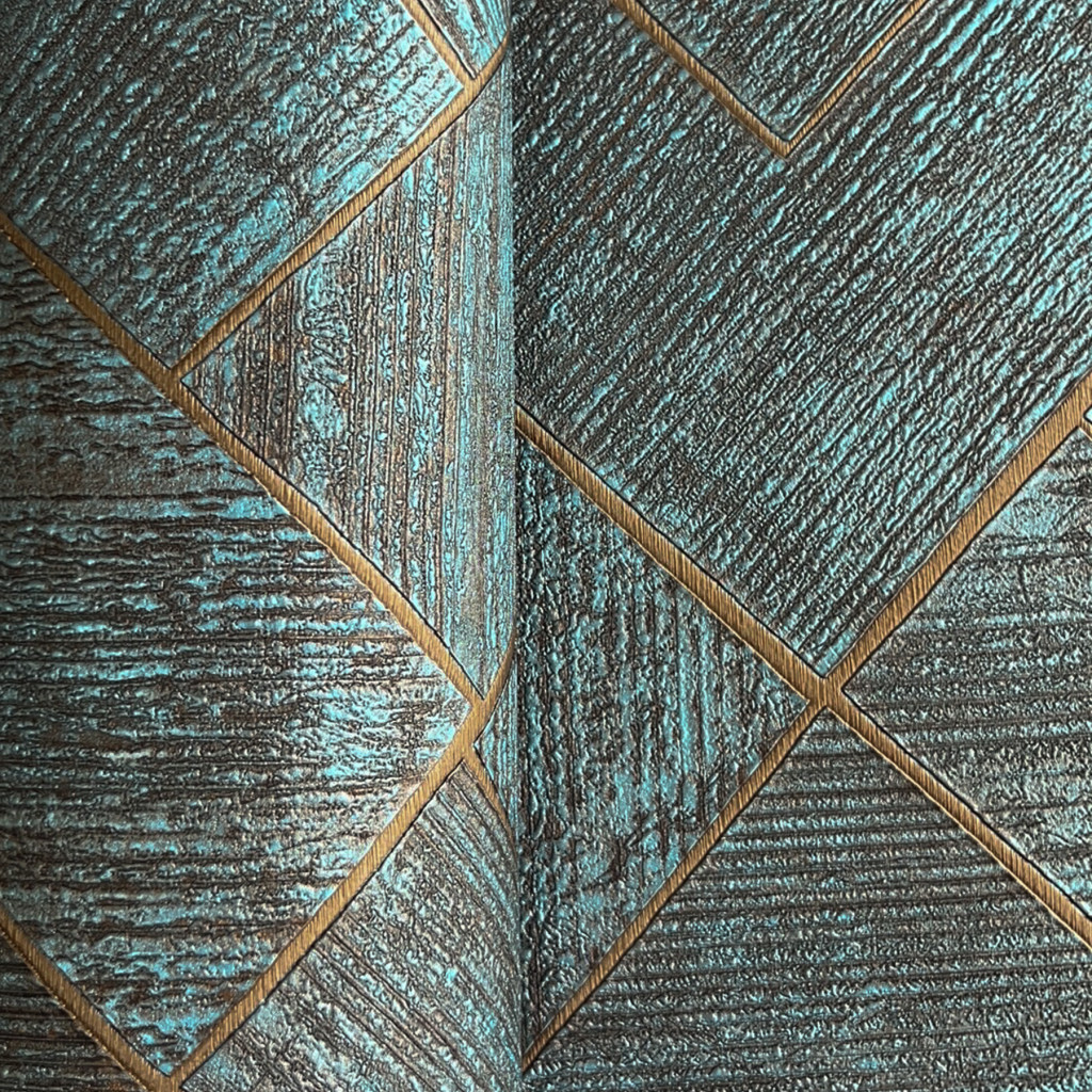 Türkiz és barna színű geomterikus mintás Vlies tapéta, Ritus 35512