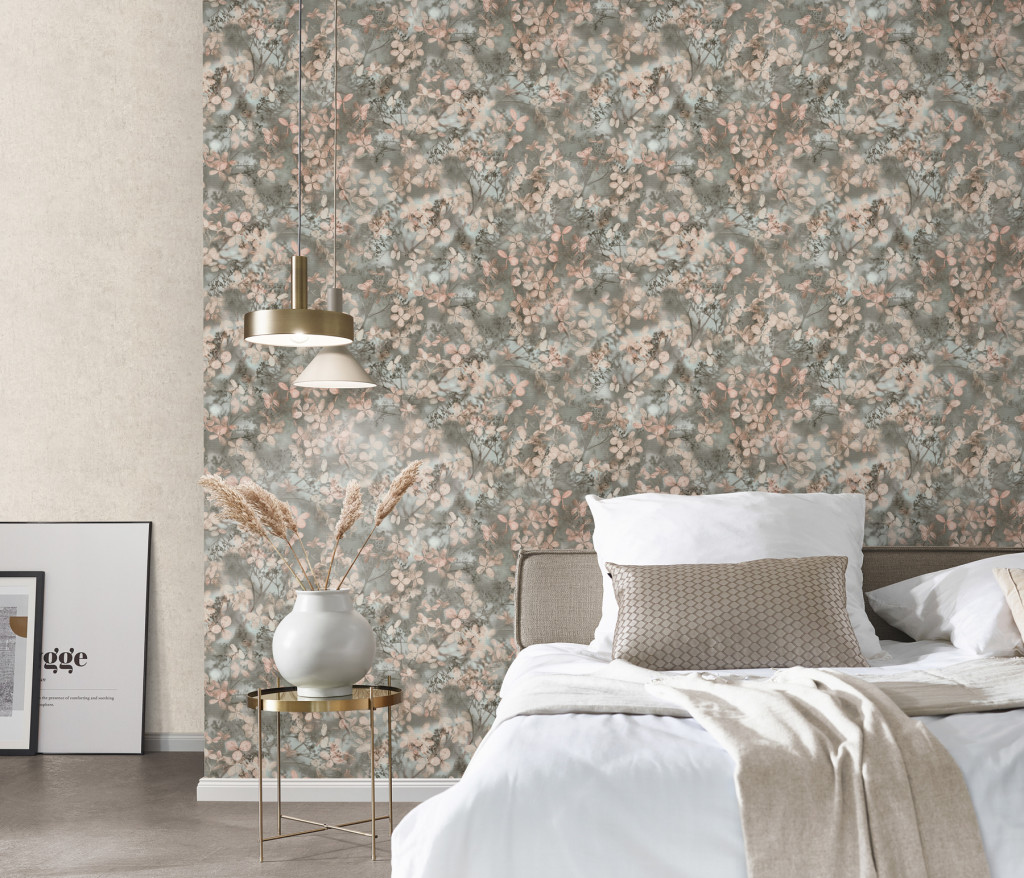 Zöld alapon bézs színű növényi mntás Vlies tapéta, Play of Light 10415-10