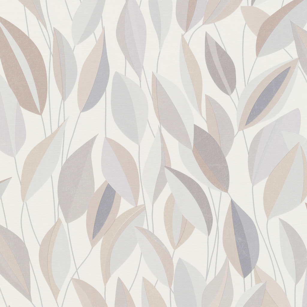 Tört fehér alapon szürke levélmintás Vlies tapéta, Gentle 10431-31